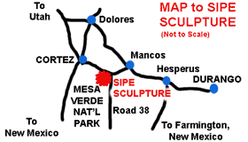 Dave Sipe's Sculpture is located between Mancos, Colorado and Mesa Verde on the corner of Colorado State Highway 160 and Road 38. Our address is 7763 Road 38, Mancos, CO 81328. Our phone number is 970/533-7518.